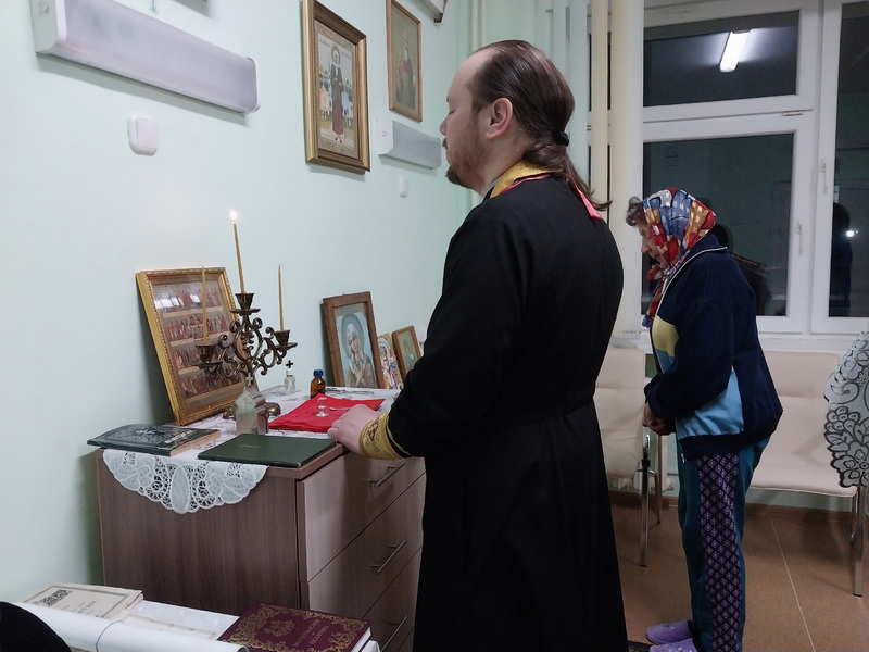 12 марта настоятель прихода храма святого преподобномученика Афанасия Брестского г. Слонима протоиерей Владимир Бобчик и клирик храма иерей Александр Грак в больничной часовне в честь святой блаженной Матроны Московской совершили молебен о тяжело болящих.