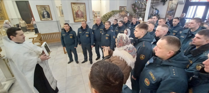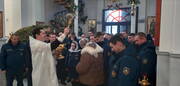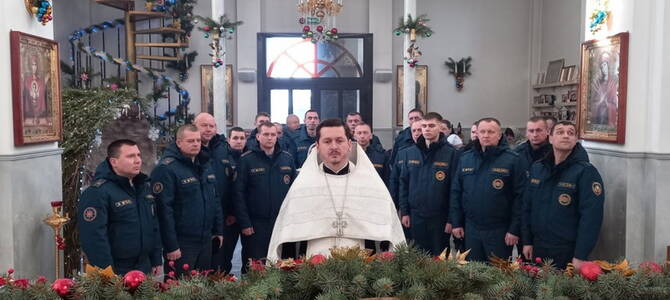 Настоятель храма иерей Иоанн Кисель совершил молебен о здравии сотрудников МЧС. После богослужения священник поздравил собравшихся с январскими праздниками и профессиональным праздником, пожелал спасателям мужества, отваги, смелости и помощи Божьей в служении на благо народа. На молитвенную память иерей Иоанн подарил сотрудникам РОЧС икону Ангела Хранителя.
