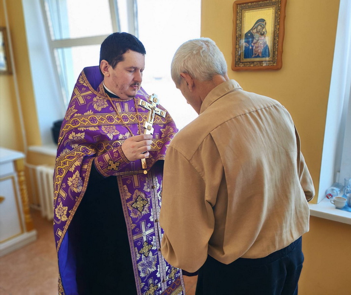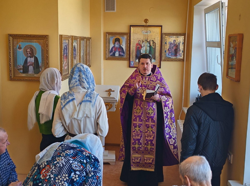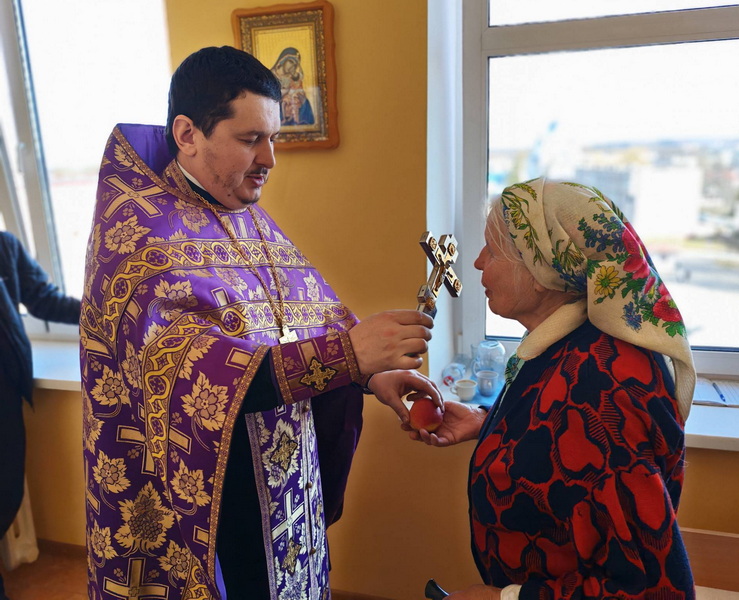 После совместной молитвы священник поздравил пациентов и медперсонал с праздником воскресного дня, пожелал всем душевного и телесного здравия, скорейшего выздоровления, а также вручил фрукты.