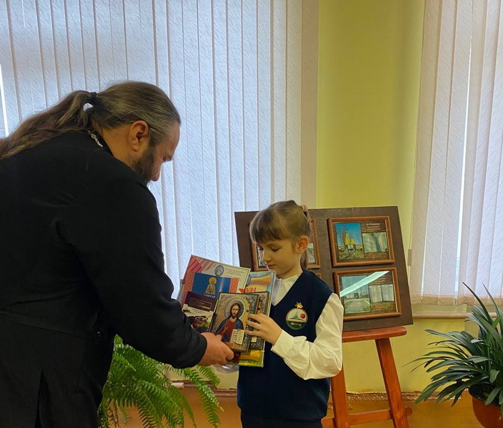 Священнослужитель вручил дипломы, иконки и сладости учащимся Вселюбской средней школы — участникам конкурса «Красота Божьего мира» и пожелал им и впредь принимать активное участие в духовном просвещении и творчестве.