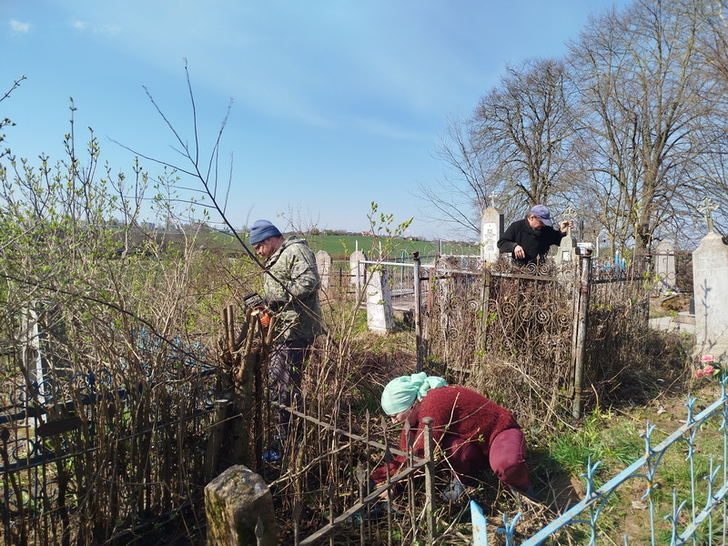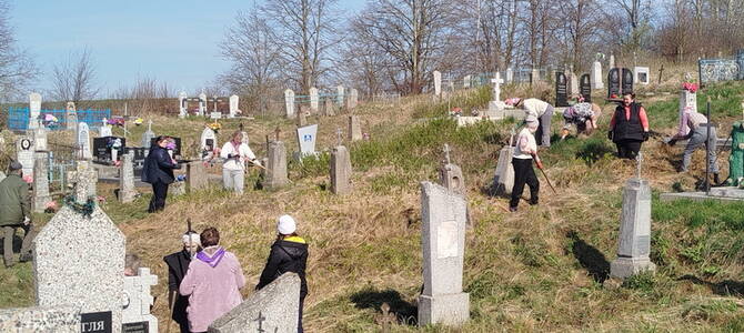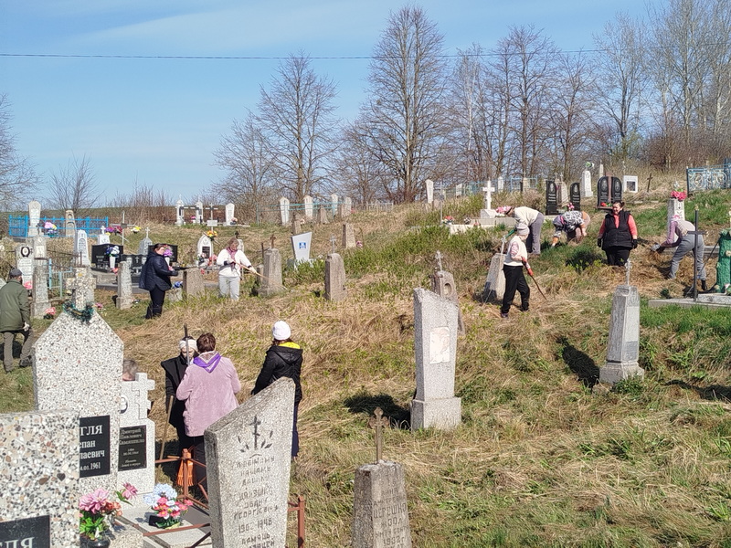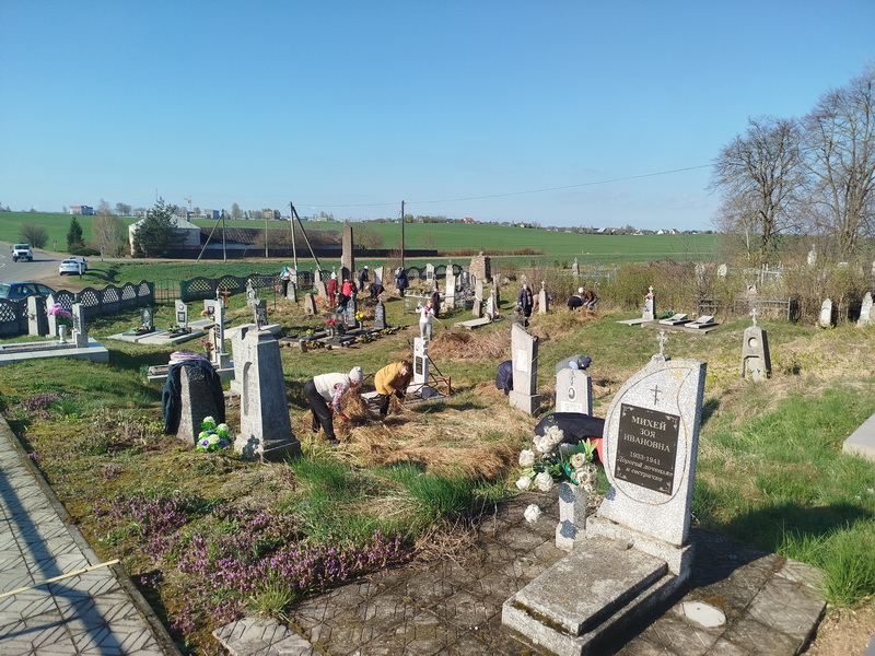 18 апреля настоятель храма святого великомученика Димитрия Солунского аг. Щорсы Новогрудского благочиния иерей Димитрий Почебут совместно с прихожанами храма святого великомученика Георгия Победоносца д. Заполье Кореличского района, педагогами и учащимися Красненской средней школы приняли участие в акции по наведению порядка на кладбище в деревне Заполье ко дню особого поминовения усопших - Радонице.