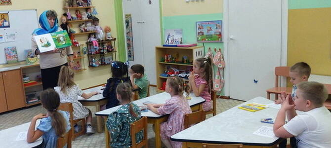 Дети узнали, как появились Земля, вода, растения, откуда взялись птицы во всем их многообразии. Также малыши рисовали, играли в тематические игры, слушали рассказ «Умная птичка», учились благодарить Бога за подаренный Им человеку мир.