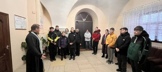 Настоятель храма протоиерей Николай Косяк рассказал историю храма, а также поговорил со школьниками о важности домашней и церковной молитвы.