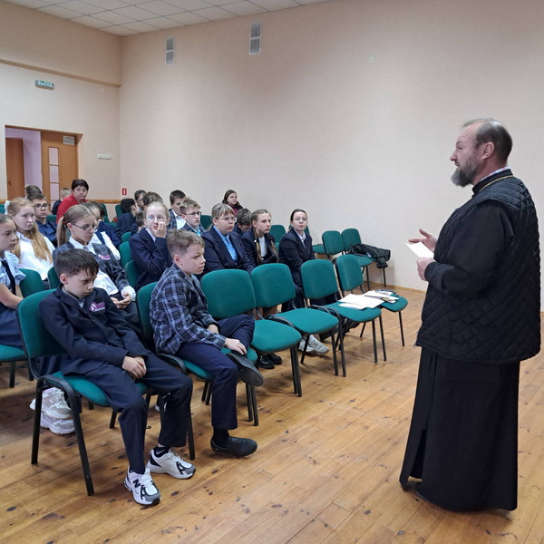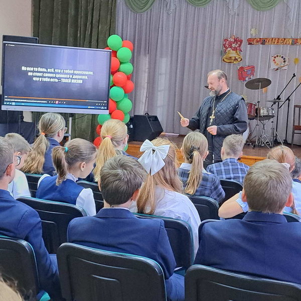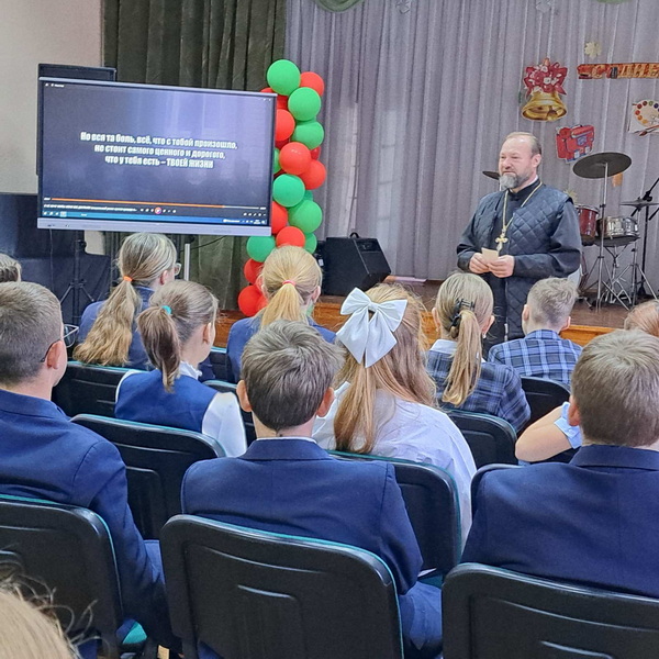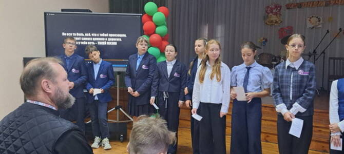 9 октября настоятель Свято-Троицкого храма г.п. Мир Кореличского благочиния иерей Феодор Лукашевич побывал в ГУО «Средняя школа г.п. Мир им. А.И. Сташевской», где в рамках месячника формирования ценностного отношения к жизни принял участие в открытом диалоге «Ценности жизни» с учащимися 6-7 классов.