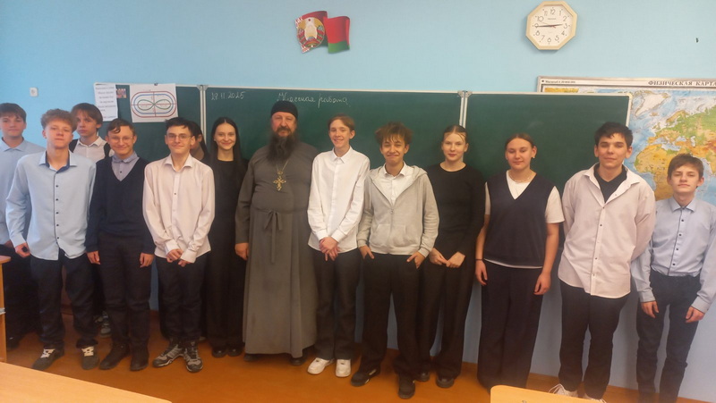 28 ноября настоятель прихода храма в честь иконы Божией Матери «Споручница грешных» г. Слонима протоиерей Владимир Комаров провел беседу с учащимися 9«Г» класса на тему: «Чувства и эмоции в жизни человека».