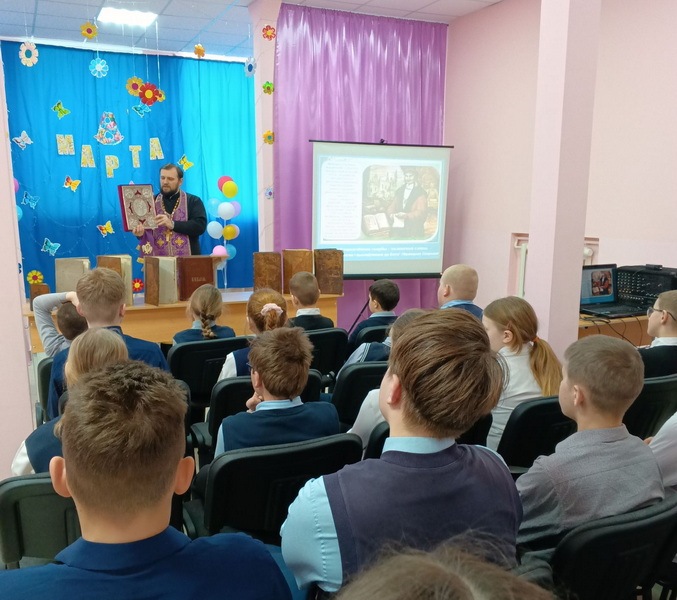 5 марта настоятель храма святителя Николая Чудотворца аг. Озерница Слонимского благочиния иерей Леонид Сенченко провел беседу с учащимися Озерницкой базовой школы на тему: "День православной книги".