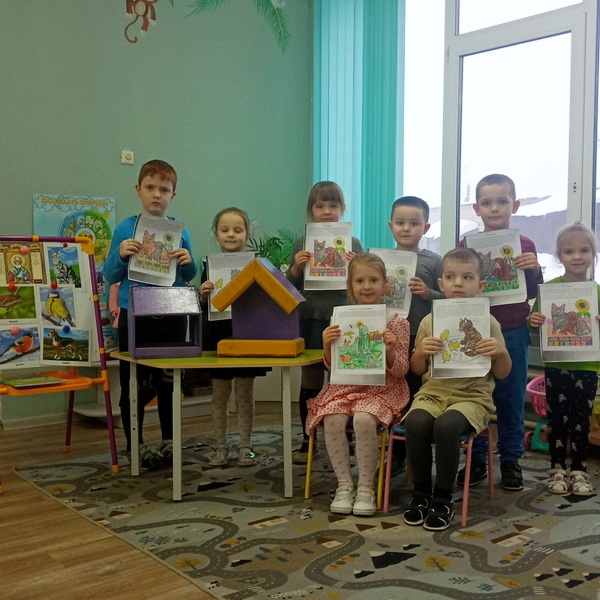 Воспитанники говорили о добром отношении к животным, слушали чтение рассказа Л. Андреева "Кусака", рассуждали, почему важно заботиться зимой о птицах. Малыши приходили к выводу, что добрым быть совсем непросто, нужно иметь чувство жалости к зверюшкам и птицам, желание потрудиться и помочь им. Дети рассматривали иллюстрации, раскрашивали тематические рисунки.