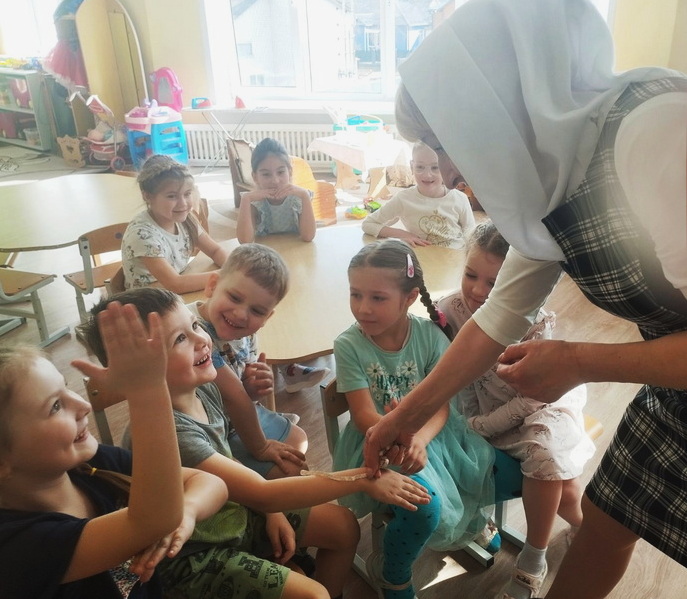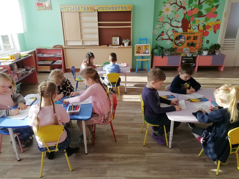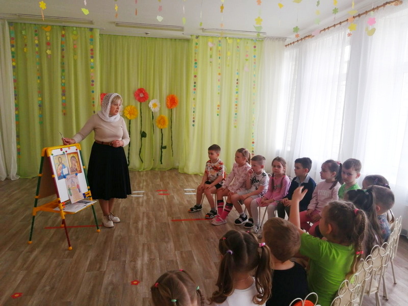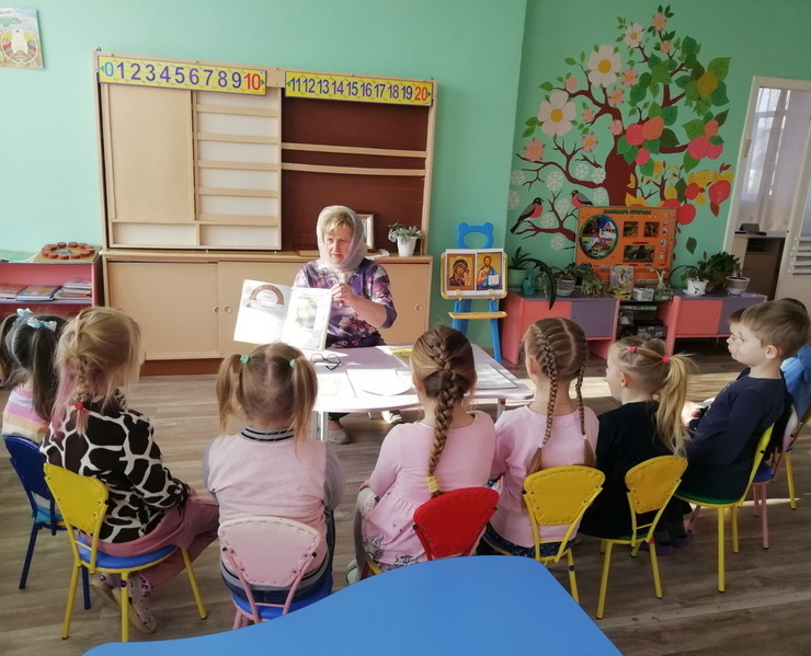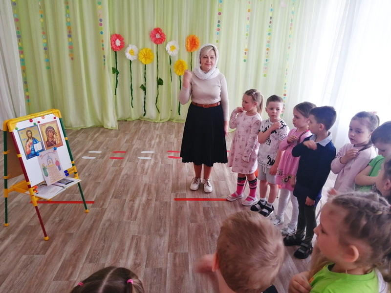 Занятия в разновозрастных группах прошли на разные темы. Малыши узнали, что Матерь Божия - Защитница всех людей. В средних группах беседовали на темы "И Слово было у Бога", "Добрые слова и дела", «Слова "колючие" и "добрые"».