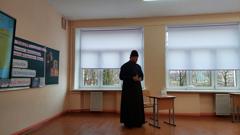 31 марта клирик Свято-Никольского кафедрального собора г. Новогрудка иерей Николай Лащевский побывал в средней школе №5 имени Г.Фомиченко, где провел беседу с учениками старших классов в рамках информационно-образовательного проекта «Школа Активного Гражданина».
