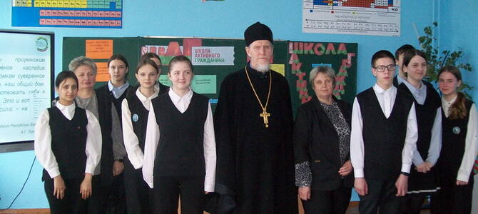 1 апреля настоятель храма Святой Живоначальной Троицы аг. Деревня Слонимского благочиния протоиерей Анатолий Ежевский посетил Деревновскую базовую школу, где принял участие в мероприятии «ШАГ» на тему: «Быть достойным гражданином Республики Беларусь — значит разделять и поддерживать духовные ценности белорусского общества».
