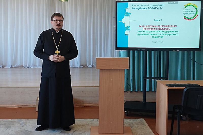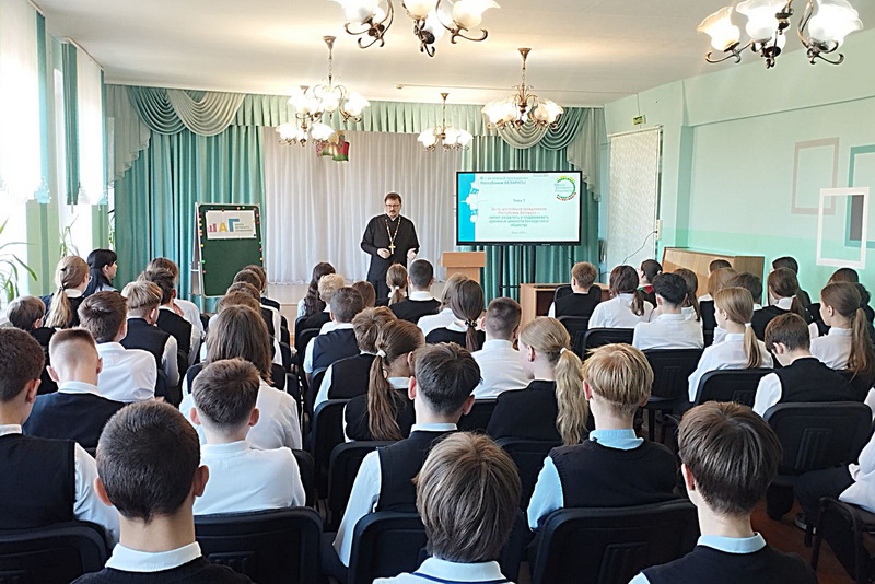 В ходе открытого диалога священнослужитель совместно с учащимися обсудил духовные ценности белорусского народа, что относится к историко-культурному наследию белорусского народа, почему важно сохранять семейные ценности, а также в чем проявляется ответственность каждого белоруса за сохранение природного наследия для будущих поколений.