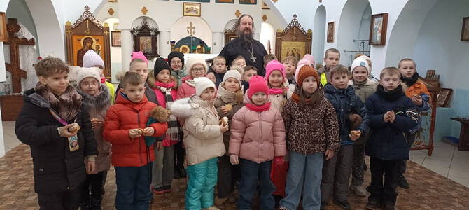 Священник рассказал школьникам о храме, молитве и Великом посте, который Церковь призывает соблюдать каждого христианина по мере сил и возможностей. Основное внимание протоиерей Владимир попросил уделить послушанию и прилежанию. Прощаясь, он вручил детям сладости и благословил их на успешную учебу.