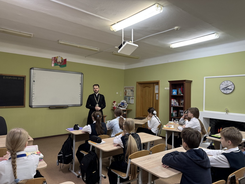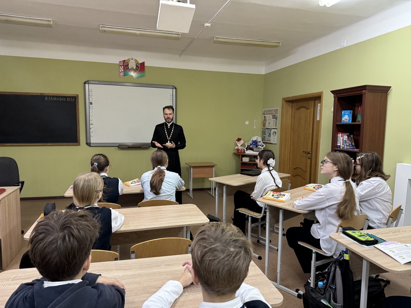 19 ноября клирик Свято-Троицкого собора г. Слонима иерей Николай Савицкий посетил городскую гимназию № 1 им. Ф. М. Синичкина. Священник провел беседу с учащимися 6 «Б» класса на тему: «Жизнь напоказ: плюсы и минусы» (соцсети, стримы, кибербезопасность).