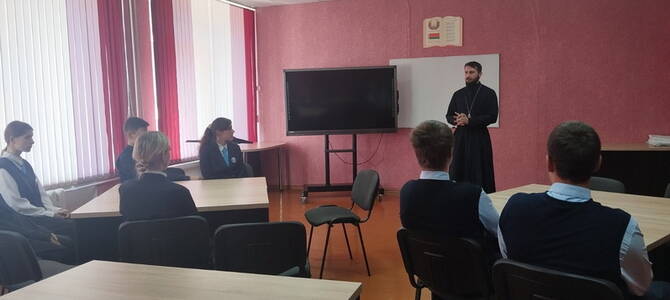 26 сентября настоятель храма святых апостолов Петра и Павла аг. Валевка Новогрудского района иерей Евгений Запольский провел беседу с учащимися 9-11 классов Валевской средней школы на тему: «Воздвижение Креста Господня».