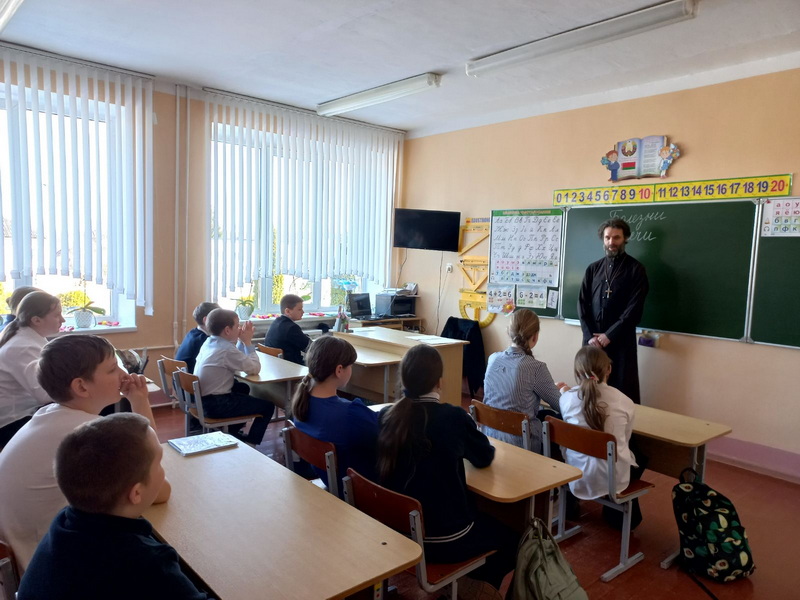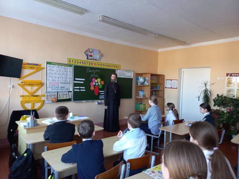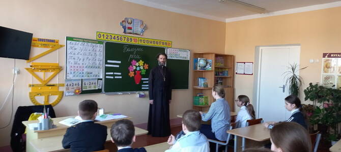 5 марта настоятель прихода храма Преображения Господня аг. Райца Кореличского благочиния иерей Алексей Шишкир беседовал с учащимся 6 класса Райцевской средней школы имени В.А. Головача на тему: "Сквернословие".