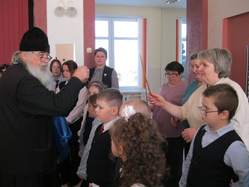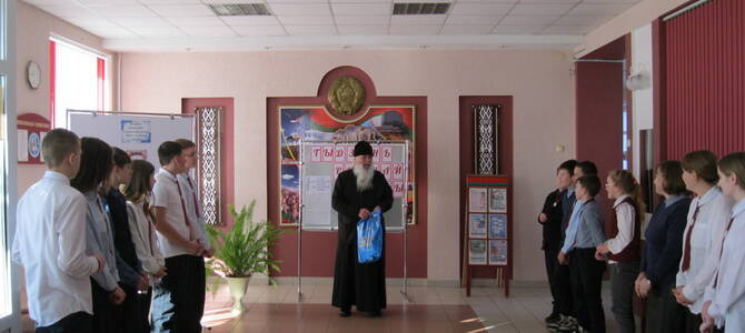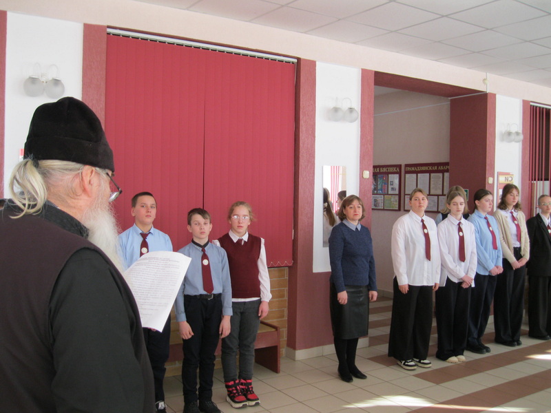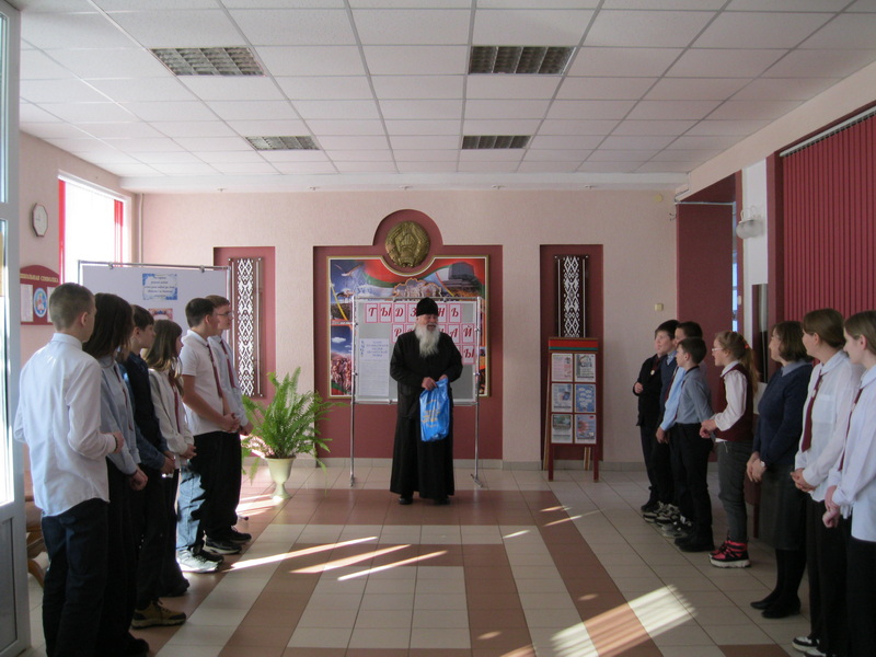 16 февраля настоятель прихода храма Рождества Пресвятой Богородицы аг. Мижевичи Слонимского благочиния протоиерей Николай Щаюк провел беседу с учащимися и педагогами Мижевичской средней школы о празднике Сретения Господня.