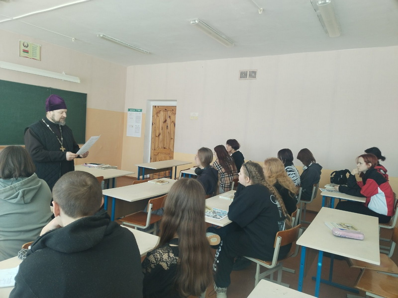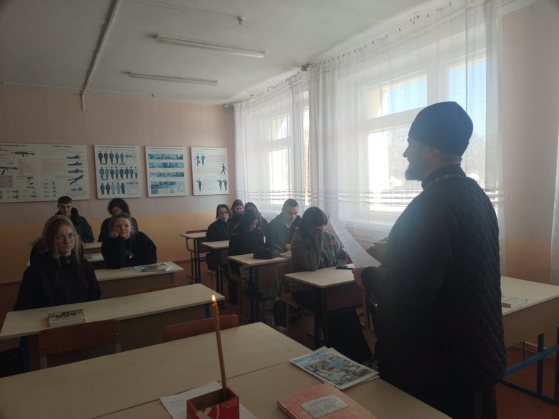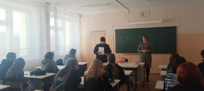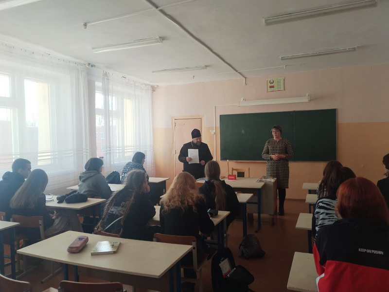 9 февраля настоятель Свято-Троицкого храма г.п. Мир Кореличского благочиния иерей Феодор Лукашевич посетил Мирский государственный колледж, где провел беседу с учащимися 2 курса.