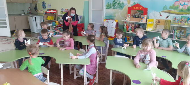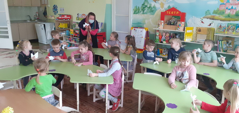 Зоя Анатольевна рассказала детям о Великом посте, как подготовке в самому большому празднику — Светлому Христову Воскресению. Дошкольники узнали, как правильно вести себя в это время. Ребята вспомнили о других праздниках, приходящихся на Великий пост. В конце занятия малыши изготовили из бумаги голубей — символ благой вести и чистоты.