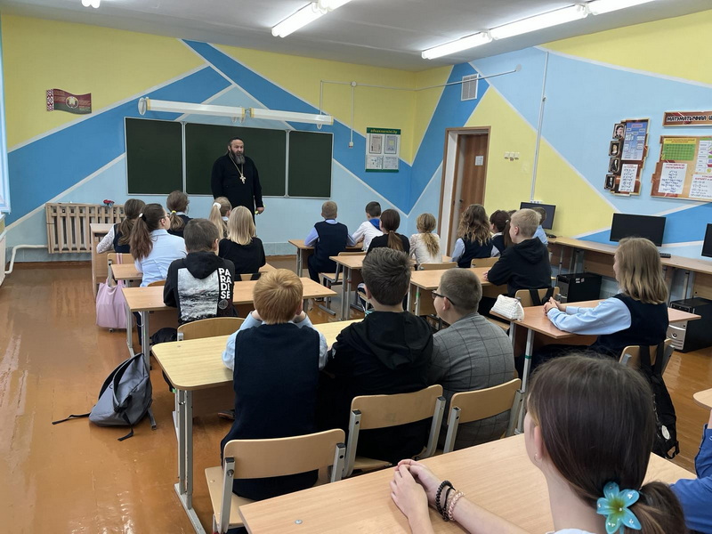 Священник говорил школьникам о вреде сквернословия, нравственных и духовных ценностях, о любви к Богу и родителям.