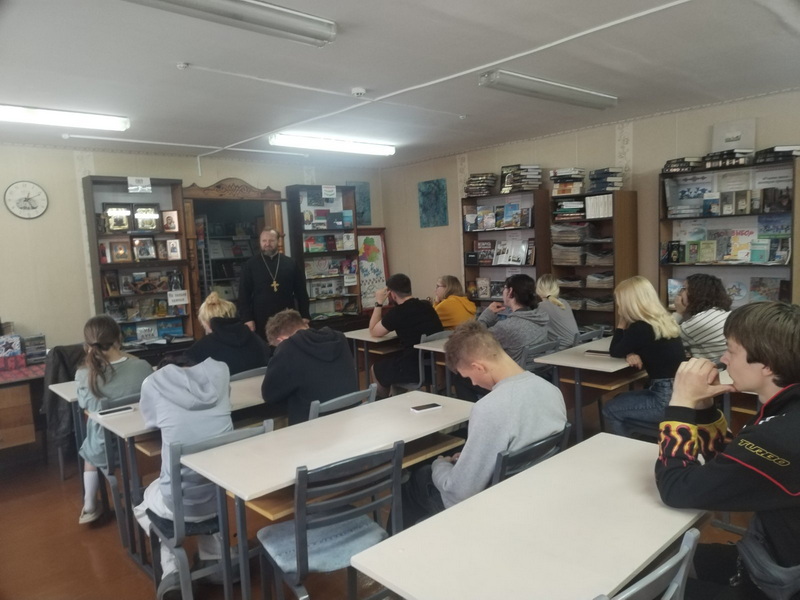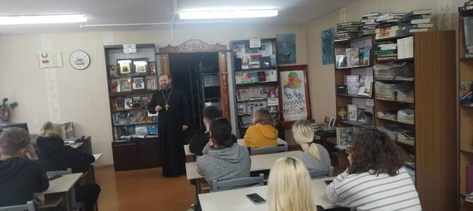 Также иерей Феодор принял участие в обновлении выставки «Свет православия» в библиотеке колледжа.