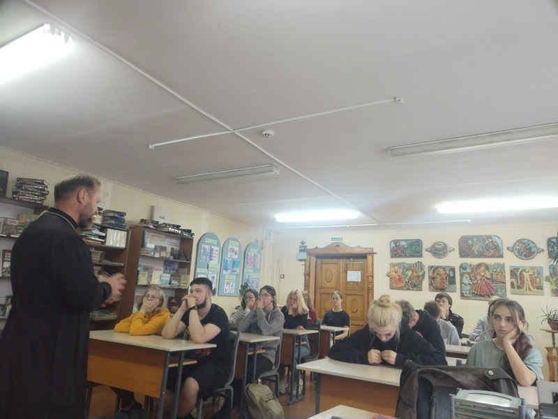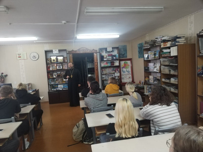 22 сентября настоятель Свято-Троицкого храма г.п. Мир Кореличского благочиния иерей Феодор Лукашевич побывал в Мирском государственном колледже и провел беседу с учащимися о взаимном терпении.