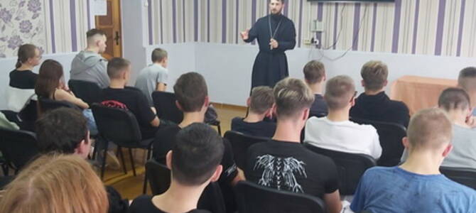 17 сентября клирик храма святых благоверных князей Бориса и Глеба г. Новогрудка иерей Евгений Запольский провел беседу с учащимися 1-2 курсов Новогрудского государственного колледжа на тему: «Заповеди Божии».