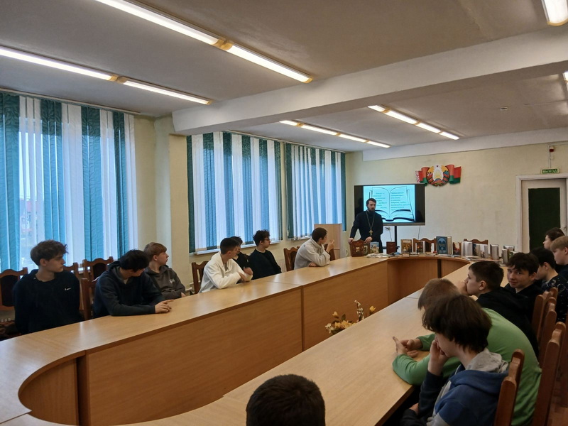 20 марта настоятель храма святых апостолов Петра и Павла аг. Валевка Новогрудского благочиния иерей Евгений Запольский принял участие в уроке духовности в Новогрудском государственном колледже в рамках Недели православной книги.