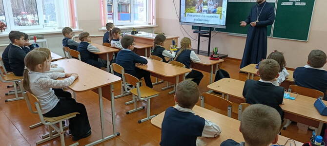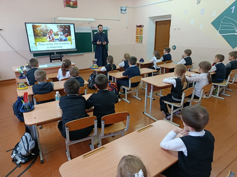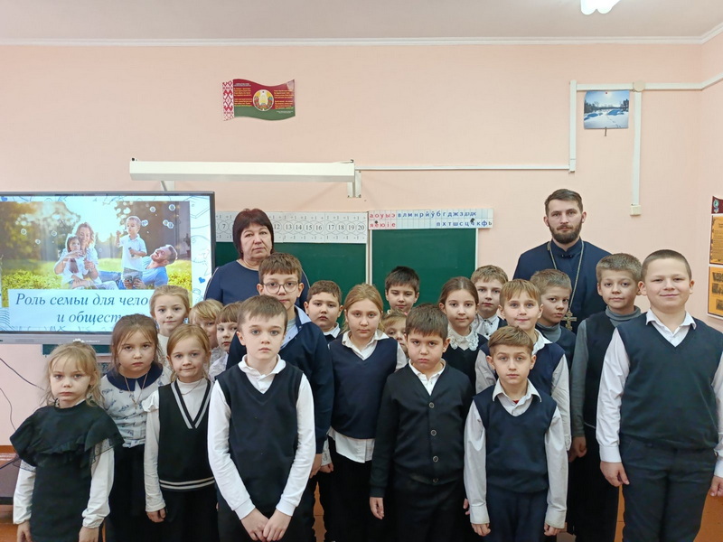 28 ноября клирик храма святых благоверных князей Бориса и Глеба г. Новогрудка иерей Евгений Запольский посетил Городеченскую среднюю школу, где побеседовал с учащимися 1-2 классов на тему: "Значение семьи для человека и общества".