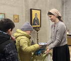 Завершили встречу праздничной игрой «Тайный мешок святителя Николая». Каждый участник заранее подготовил и положил в общий мешок свой подарок. Помолившись у иконы святого, дети по очереди выбирали из мешка рождественские сюрпризы и делились друг с другом радостными впечатлениями.