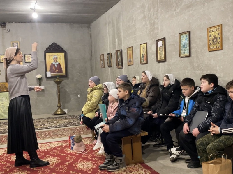Руководитель хора Е.А. Герасимук провела для юных хористов репетицию, посвященную подготовке к предстоящему празднику Рождества Христова. После музыкальной части рассказала детям о жизни и чудесах святителя Николая Чудотворца.