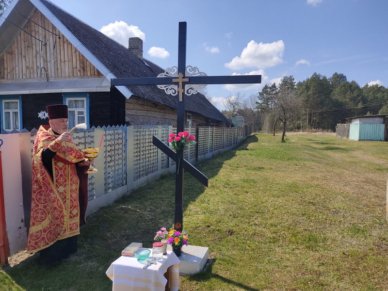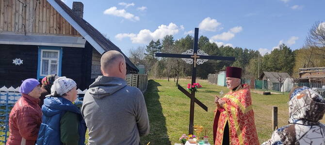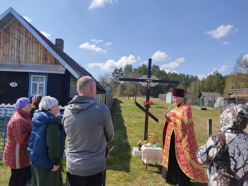 В своем слове к прихожанам священник поздравил всех с Пасхой Господней и отметил, что христиане должны свято чтить Крест Господень. Вся жизнь христианина освящается крестом: с момента крещения и до самого последнего часа носит он на груди крест как знамение победы Христовой над грехом и смертью. В завершении он поблагодарил жителей деревни потрудившихся во Славу Божию.