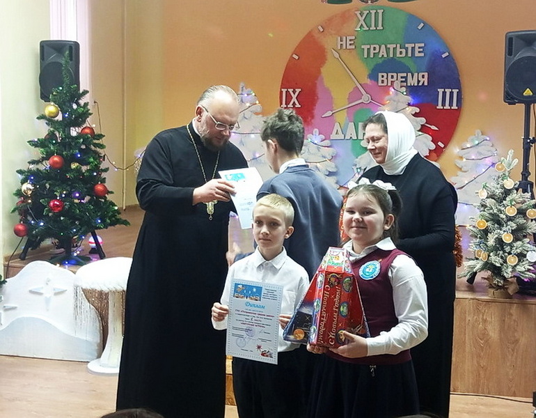 После награждения и вручения дипломов и подарков протоиерей Анатолий благословил участников на продолжение добрых дел во имя Христа и окропил их крещенской водой.