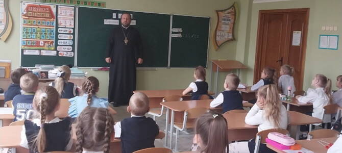 21 октября настоятель прихода храма святого преподобномученика Афанасия Брестского г. Слонима протоиерей Владимир Бобчик провел духовно-нравственную беседу с учащимися 2 класса средней школы №4 им. П.И. Батова на тему: «Отец – опора и основа крепкой семьи, защитник и хозяин».