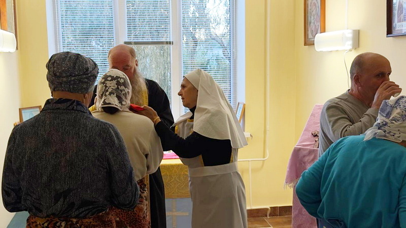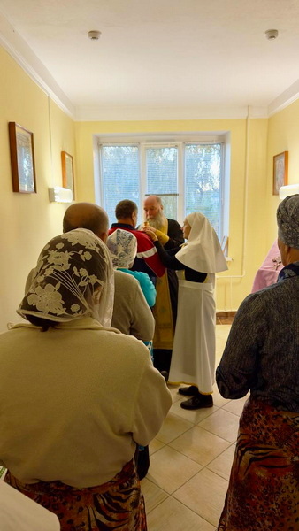 Болящие исповедовались и причастились Святых Христовых Таин. Немощных священник причастил в палатах.