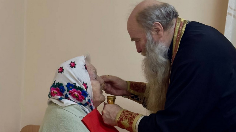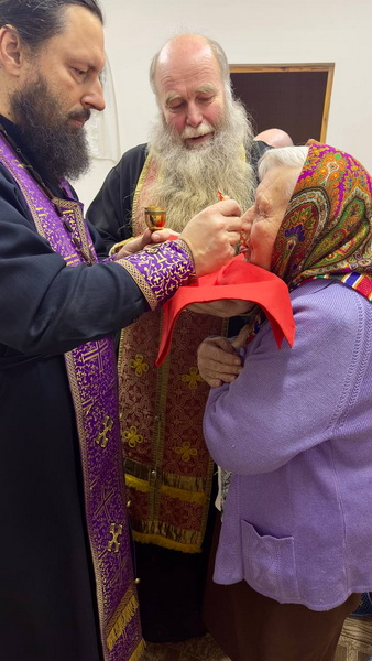 Пожилые люди исповедались и причастились Святых Христовых Таин. Немощных причастили в палатах.