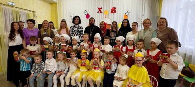 17 апреля в детском саду №3 г. Новогрудка, который является ресурсной площадкой по духовно-нравственному воспитанию дошкольников, прошел утренник «Пасхальная радость». На нем присутствовали настоятель храма иконы Божией Матери «Нечаянная Радость» г. Новогрудка протоиерей Вадим Кузьмич, духовно окормляющий воспитанников, родители ребят.