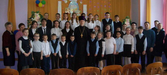 16 апреля настоятель храма Святой Живоначальной Троицы аг. Деревная Слонимского благочиния протоиерей Анатолий Ежевский и воспитанники приходской Воскресной школы побывали с Пасхальным поздравлением в Деревновской базовой школе.