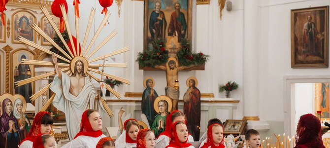 19 апреля в Свято-Троицком соборе г. Слонима с пасхальным концертом для прихожан и горожан под управлением регента А.В. Пергуновой выступил приходской детский хор «Сёмушки».