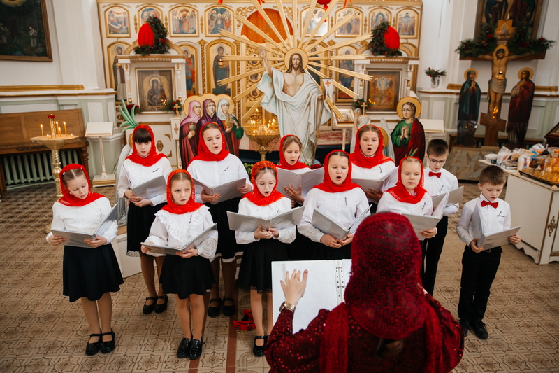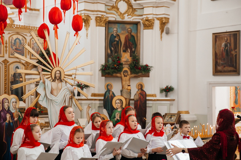 Тропарь Пасхи в разном исполнении и на разных языках, пасхальные песнопения, в которых прославляется Воскресший Христос, звучали под сводами собора и проникали в сердца слушателей. Детские голоса и пасхальные восклицания никого в этот день не оставили равнодушными.