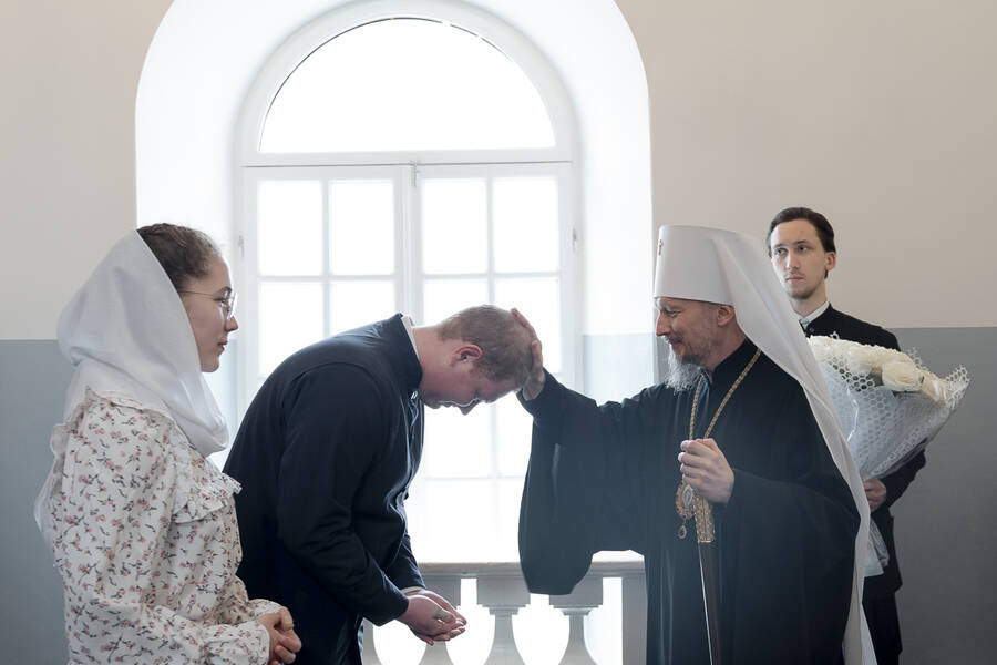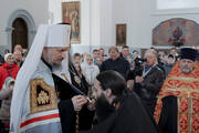 Встречали Патриаршего Экзарха наместник обители архиепископ Новогрудский и Слонимский Гурий, братия обители, преподаватели Минской духовной семинарии и клирики Новогрудской епархии.