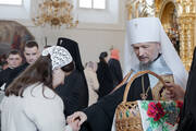После чего духовенство, братия обители, паломники и гости получили из рук Архипастырей шоколадки и пасхальные яйца.