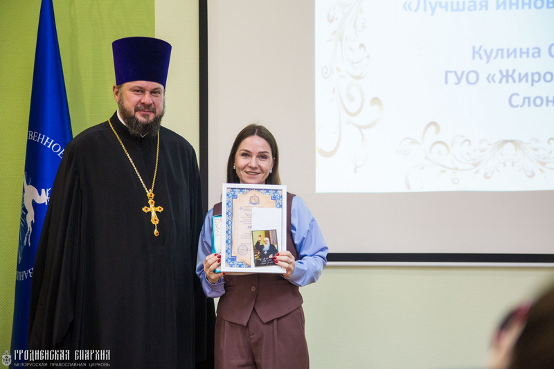 Среди награждаемых были педагоги и сотрудники учебных заведений на территории Новогрудской епархии. Так, учитель информатики ГУО «Средняя школа № 1 г. Новогрудка» Н.В. Клок отмечена Дипломом I степени в номинации «Труд педагога как служение». Обладателем Диплома I степени в номинации «Лучшая инновационная разработка года» стала О.М. Шаркота, библиотекарь ГУО «Гимназия №1 имени Ф.М. Синичкина г. Слонима», а заместитель директора по воспитательной работе ГУО «Жировичская средняя школа Слонимского района» О.В. Кулина награждена Дипломом II степени в номинации «Лучшая инновационная разработка года».