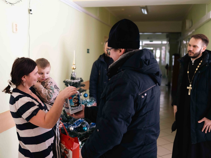 Подарки детям вручили руководитель миссионерского отдела иерей Николай Савицкий, клирик Свято-Троицкого собора г. Слонима, клирик собора новомучеников и исповедников Церкви Русской г. Дятлово иерей Алексей Степанович, сотрудник миссионерского отдела в Дятловском благочинии А.В. Пышко и участница молодежного клуба «Симфония».