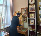 Директор учреждения образования Д.В. Криштопчик, заведующий музеем Е.Н. Несина и заместитель по воспитательной работе О.А. Пашкевич поблагодарили священника за ценный подарок.