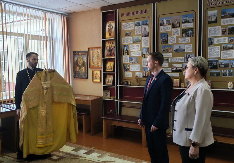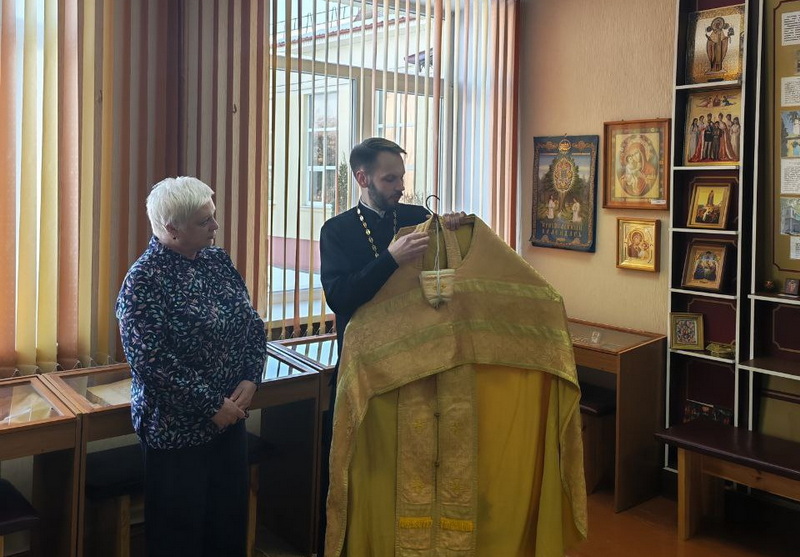 3 февраля клирик Свято-Троицкого собора г. Слонима иерей Николай Савицкий посетил городскую гимназию №1 им. Ф.М. Синичкина, где от прихода передал в дар гимназическому музею конфессий «Нам засталася спадчына» священническое облачение (фелонь, епитрахиль, поручи).