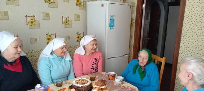 22 февраля, в Прощеное воскресенье, сестры Сестричества в честь страстотерпицы царицы Александры г.п. Кореличи навестили пожилых прихожан Н.И. Беликову, А.И. Мацко, Ж.Л. Расюкевич, проживающих в социальном жилье, и Г.А. Кришень, который является малолетним узником концлагеря.