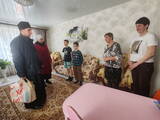 Священнослужитель и сестра милосердия в ходе беседы поинтересовались нуждами семей и передали им продуктовые наборы.