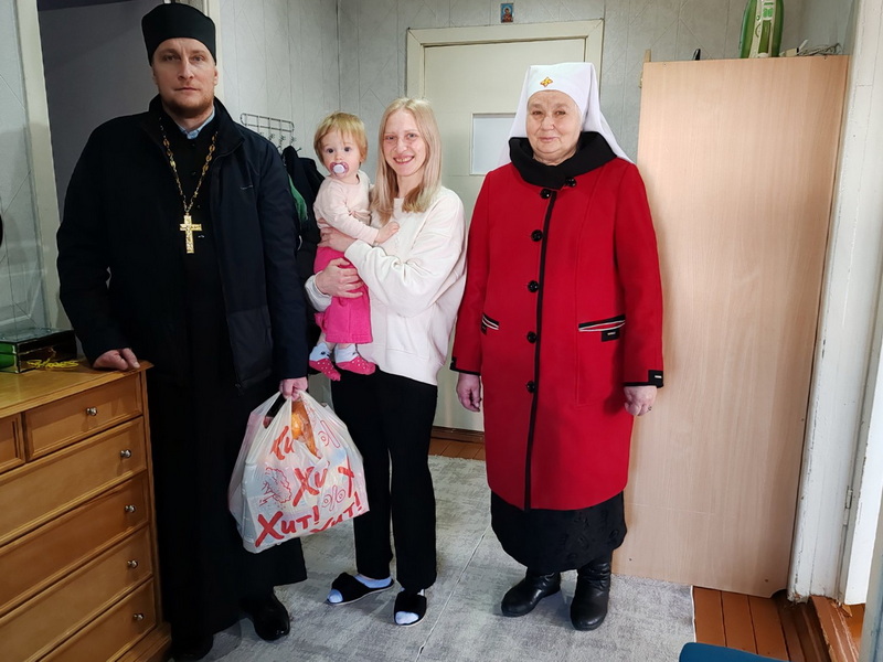 22 марта, в неделю 4-ю Великого поста и в день памяти 40 мучеников Севастийских, настоятель храма святых апостолов Петра и Павла г.п. Кореличи иерей Игорь Пирог и старшая сестра Сестричества в честь святой страстотерпицы царицы Александры С.М. Дунец посетили многодетные семьи Андреевых (3 детей), Ковжуть (3 детей) и неполную семью Житкевич.