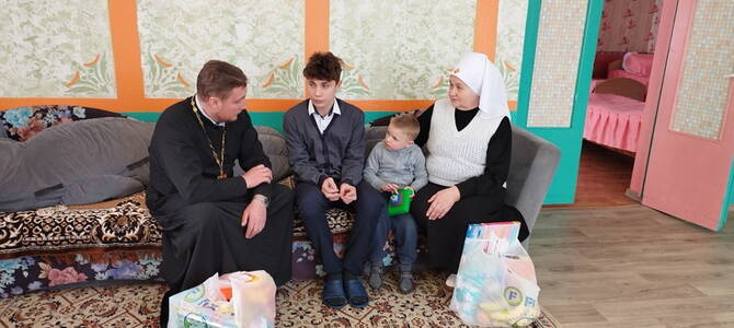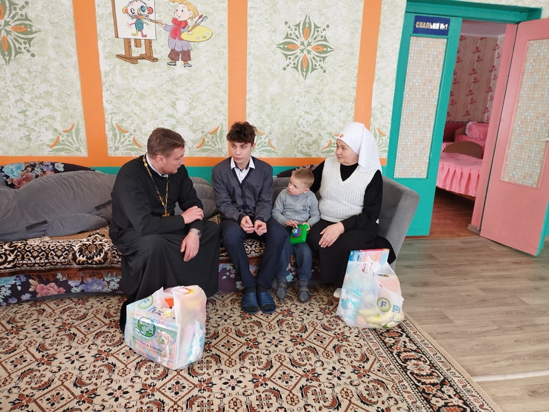 Священнослужитель и старшая сестра поинтересовались жизнью и нуждами прихожанок и передали им продуктовые наборы, а детям были переданы фрукты, сладости, игрушки и канцелярские принадлежности.