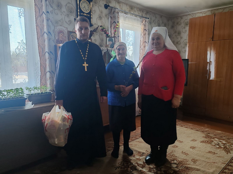 5 апреля, в праздник Входа Господня в Иерусалим, настоятель храма святых апостолов Петра и Павла г.п. Кореличи иерей Игорь Пирог и старшая сестра Сестричества в честь святой страстотерпицы царицы Александры С.М. Дунец посетили пожилых прихожан прихода А.Н. Кандрусик, С.А. Утлик и Н.И. Габрусик.